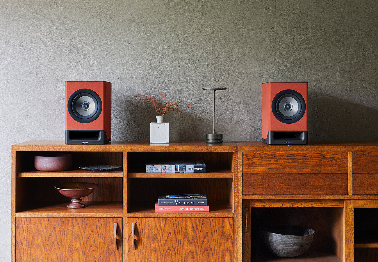 Finished in luxurious Dinamica™ microfiber, these speakers don’t just sound incredible—they look really unique with a choice of three colours. Our favourite is the Terracotta Brown which looks more of a burnt orange in real life. Their premium, suede-like texture adds a touch of sophistication to any listening space.
